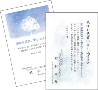寒さ厳しい季節柄、相手を気遣う気持ちを添えて送ってみてはいかがですか。出す時期は、松の内(元旦から1月7日)を過ぎてから節分(2月3日)までに出しましょう。こちらは通常はがき(官製はがき・胡蝶蘭)、私製はがきのいずれかをお選びいただけます。