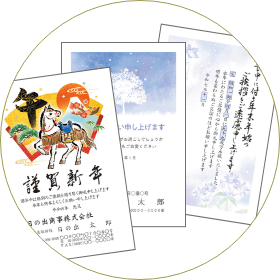 はがきについては、すべてこちらでご用意となります(年賀状は通常はがき(官製はがき)、