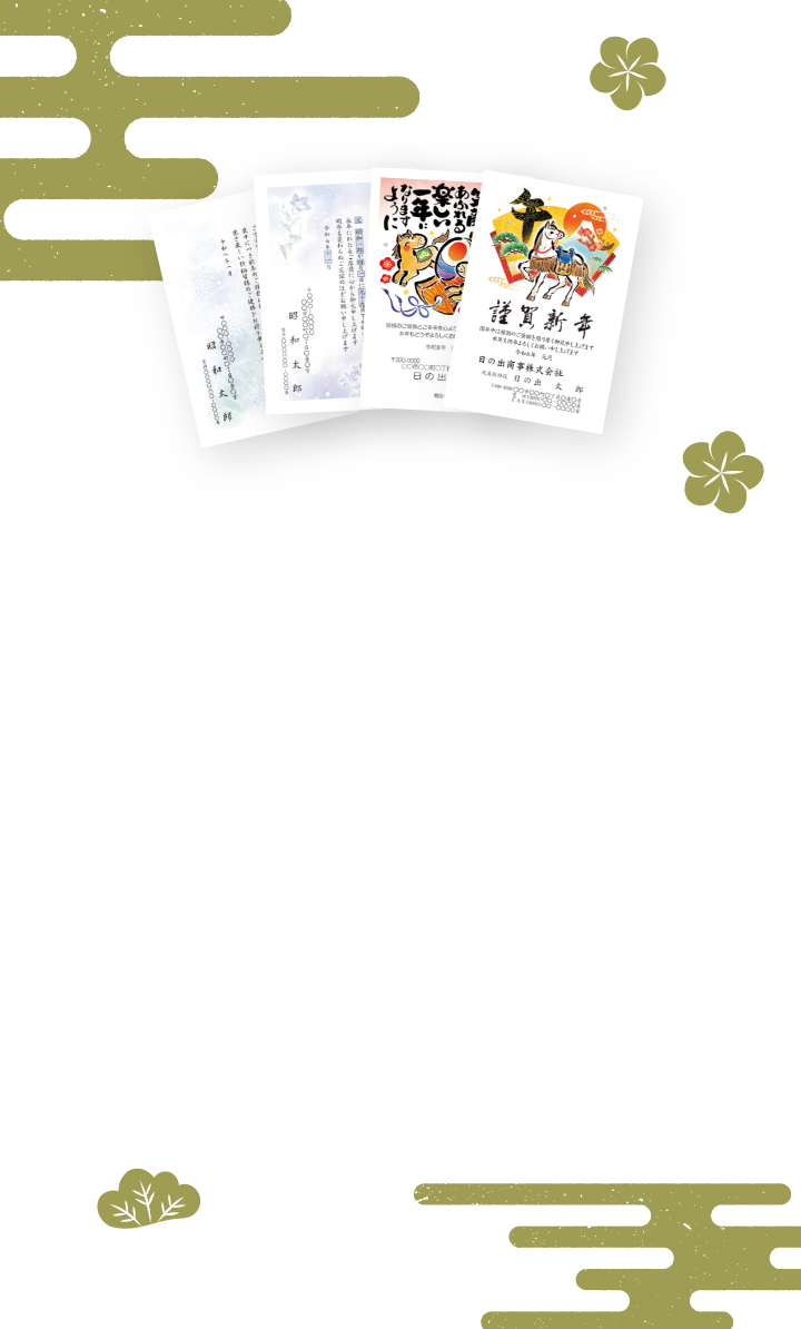 文章や絵柄の変更、また宛名の印刷についてもお受けしておりません。あらかじめご了承ください。